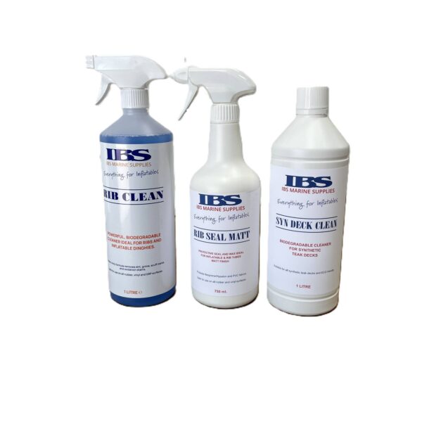 The kit contains a strong de oxidising cleaner “RIBCLEAN” and easy to use wax protector “RIB SEAL” suitable for both Hypalon and PVC material as well as bio degradable synthetic deck cleaner “SYN DECK ”